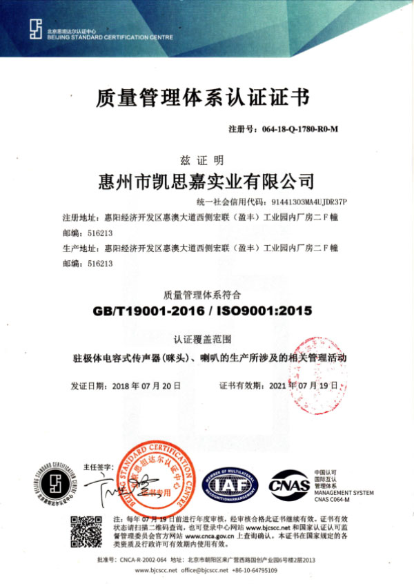 2017年 公司導(dǎo)入ISO9001:2015 質(zhì)量管理體系;